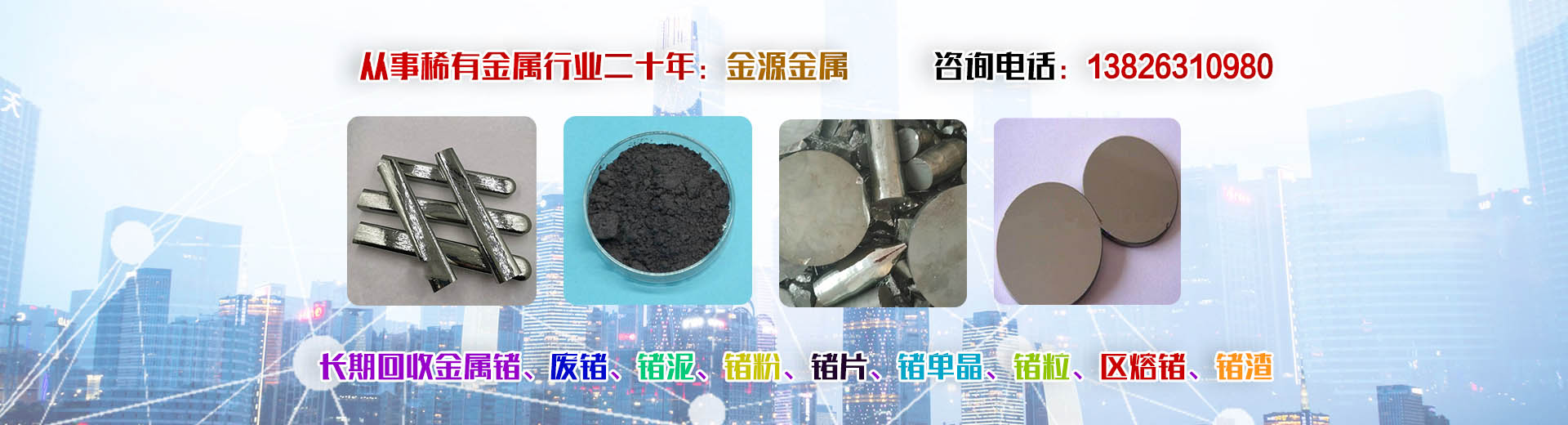 韶關(guān)市金源金屬材料有限公司坐落于中國(guó)廣東省韶關(guān)市,長(zhǎng)期收購回收銦、精銦、粗銦、銦絲、銦靶材、ITO靶材靶粉、回收金屬鍺、鍺錠、鍺粉、鍺片、回收鍺單晶、單晶鍺、鍺粒、區(qū)熔鍺、工業(yè)鍺、廢鍺、鍺泥、鍺渣、二氧化鍺回收、四氯化鍺、有機(jī)鍺、銀、純銀、銀靶材、高價(jià)收購回收ITO廢靶、回收廢銦、廢銦沙、廢銦渣、回收粗銦、廢銦絲、廢銦珠、廢銦箔、廢銦棒、收購銀焊條、銀焊絲、導(dǎo)電銀膠、金屬鎵、硝酸鎵、氧化鎵、三氯化鎵、氯化鎵,供應(yīng)及回收氧化鎵、氫氧化鎵、碲化鎵,硒化鎵,銦粉,氧化銦、氯化銦、硫酸銦、硫化銦、醋酸銦、氫氧化銦、硒化銦,碘化銦,銅銦鎵硒,含金、銀、銦、銠、鈀、鎵、鍺等稀有貴金屬材料,稀土金屬材料、氧化鏑、氧化镥、氧化鋱、氧化鐠釹等回收。